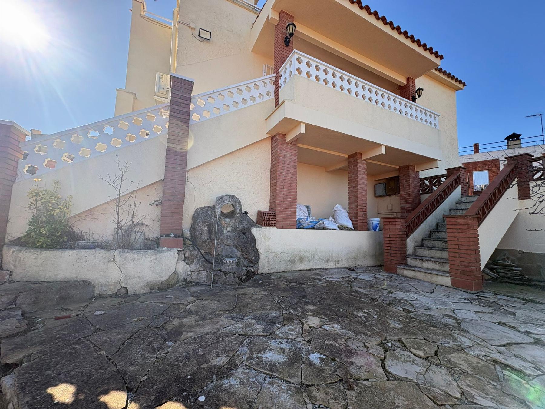 Casa en Avda Can Coral, con 242 m² construidos, 186 m² útiles, 655 m² metros de parcela, 655 metros de jardín, 3 dormitorios, 1 baños, 1 garaje/s, estado de origen, exterior, 3 armarios, 2 terraza(s), 40 m² de terraza, cocina semi amueblada, trastero, patio, orientación sureste, más de 30 años, 3 plantas del edificio, aire acondicionado split, agua caliente individual, energía agua leña/carbón, incluye agua, alta suministros realizada, acepta animales, suelo de terrazo, seguridad, balcón